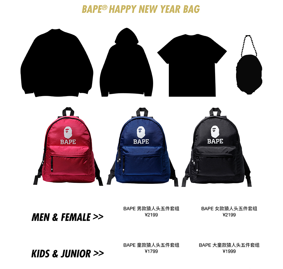 每年的新年第一天,BAPE® 都会发售「新年福袋」,以感谢粉丝们过去一年的支持。