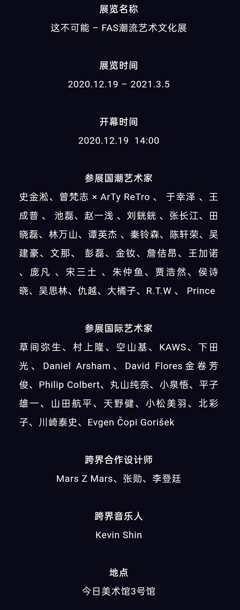 日前由 FAS 潮流艺术空间与今日美术馆联合主办的 “这不可能 - FAS 潮流艺术文化展” 在北京开幕。