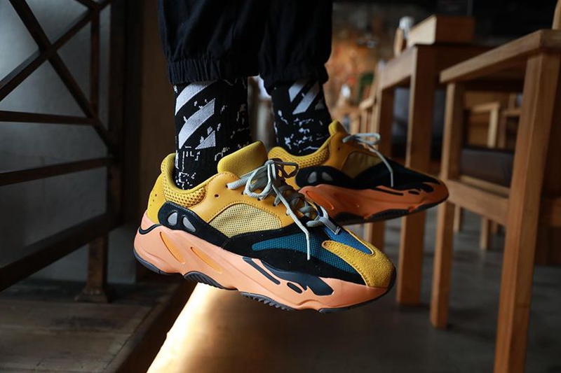 近期,全新配色的 Yeezy Boost 700 “Sun” 实物图释出之后,近日曝光上脚图,可以看出这双鞋款相较其他 Yeezy Boost 700 的配色更加亮眼,材质也更加考究。