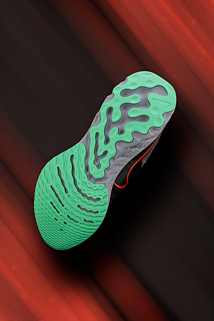 宽大的前、后掌设计理念借鉴于 Nike React Infinity Run 跑鞋,Rocker Geometry 几何结构设计和前掌处网格增宽的处理,能够带来更稳定的跑步体验。