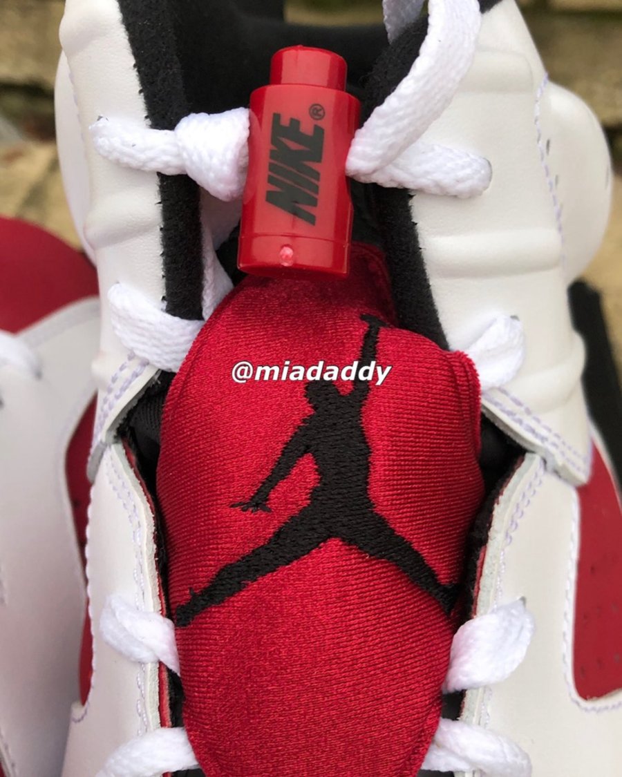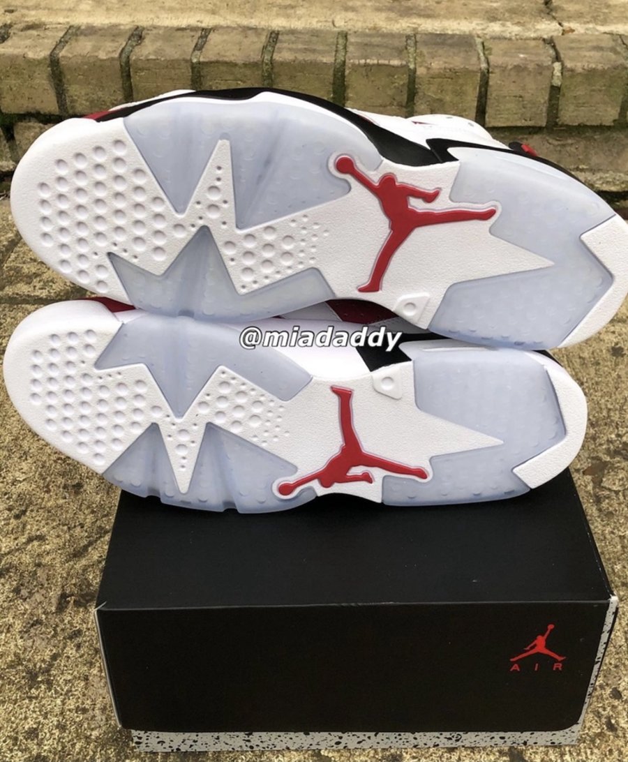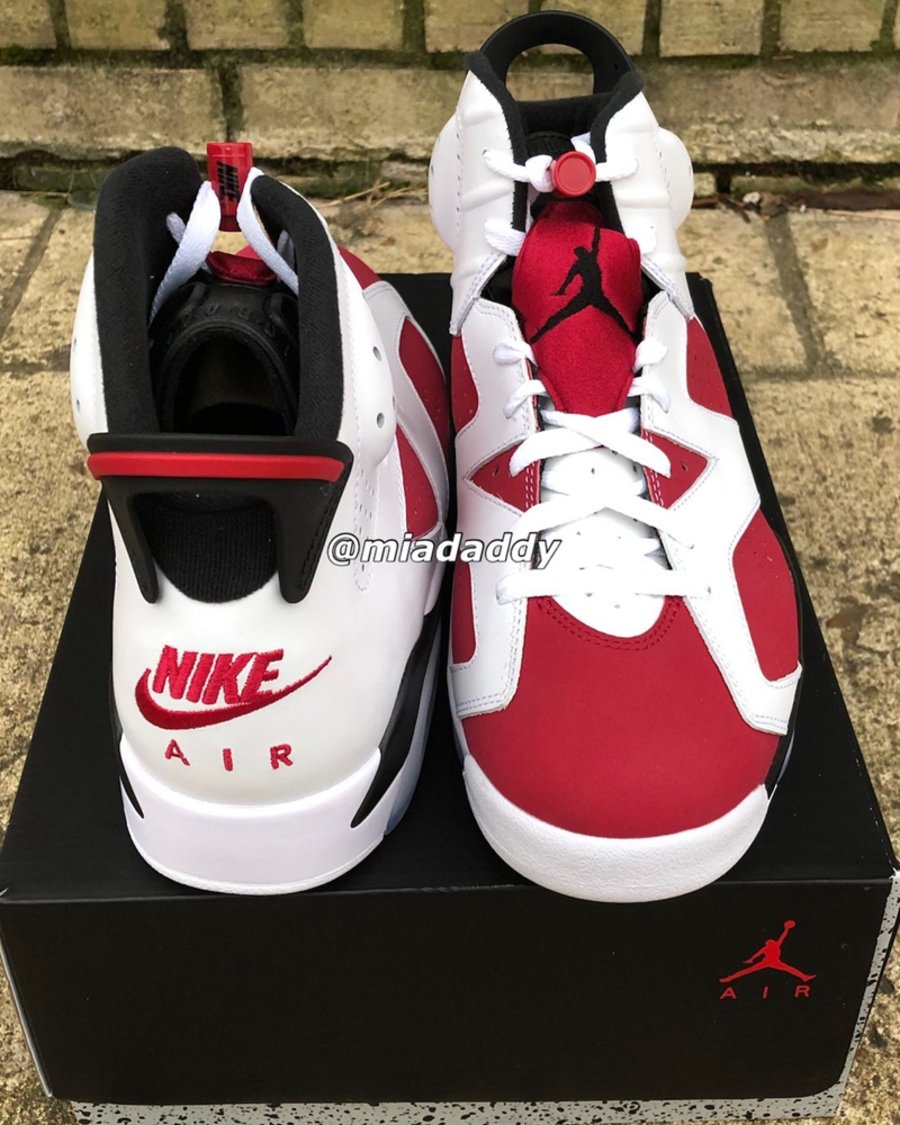 近日,球鞋爆料账号 @miadaddy 率先晒出 2021 版 Air Jordan 6 “Carmine” 最新实物。