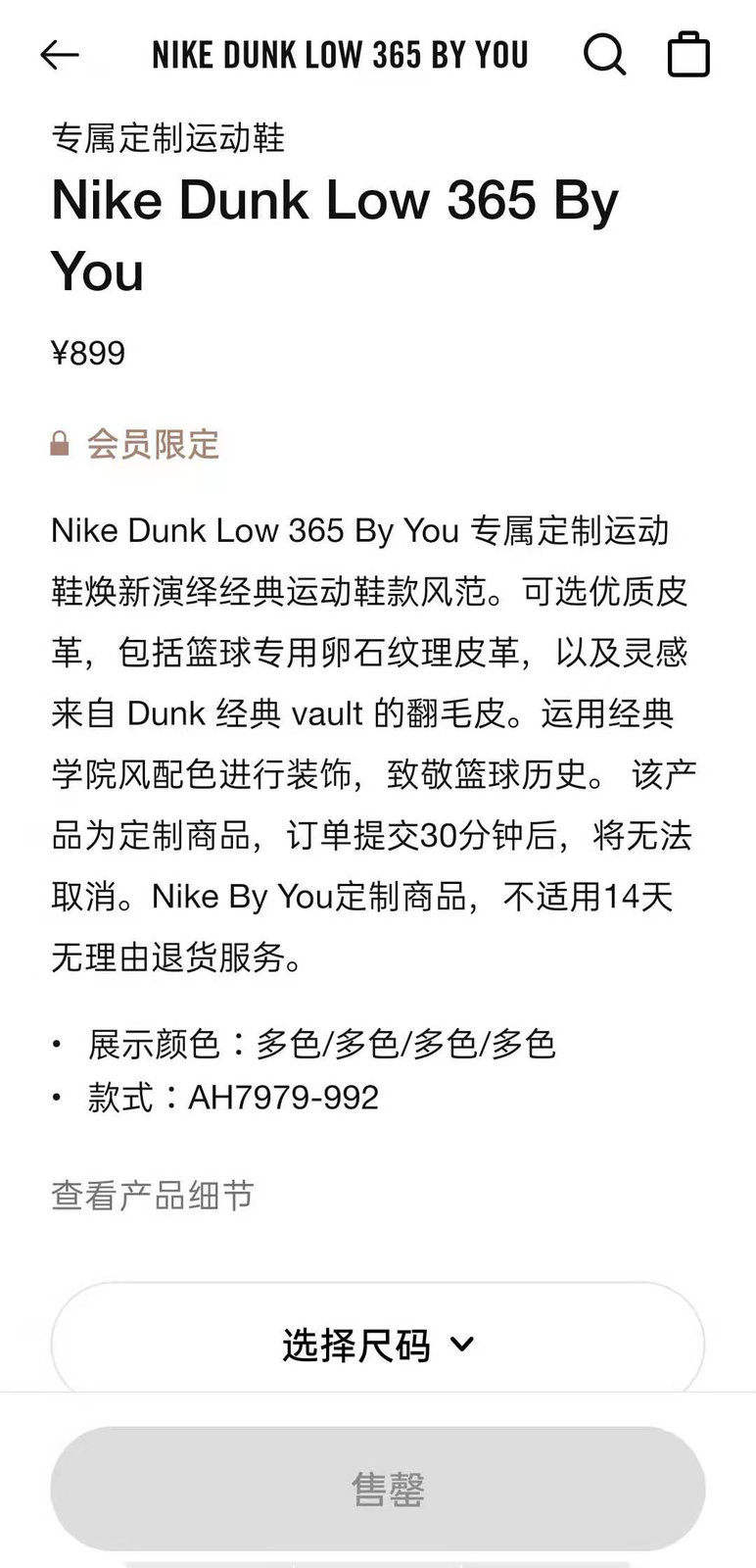 在 Nike 官网搜不到,只能在 Nike APP 上的 Nike By You 页面中找到。