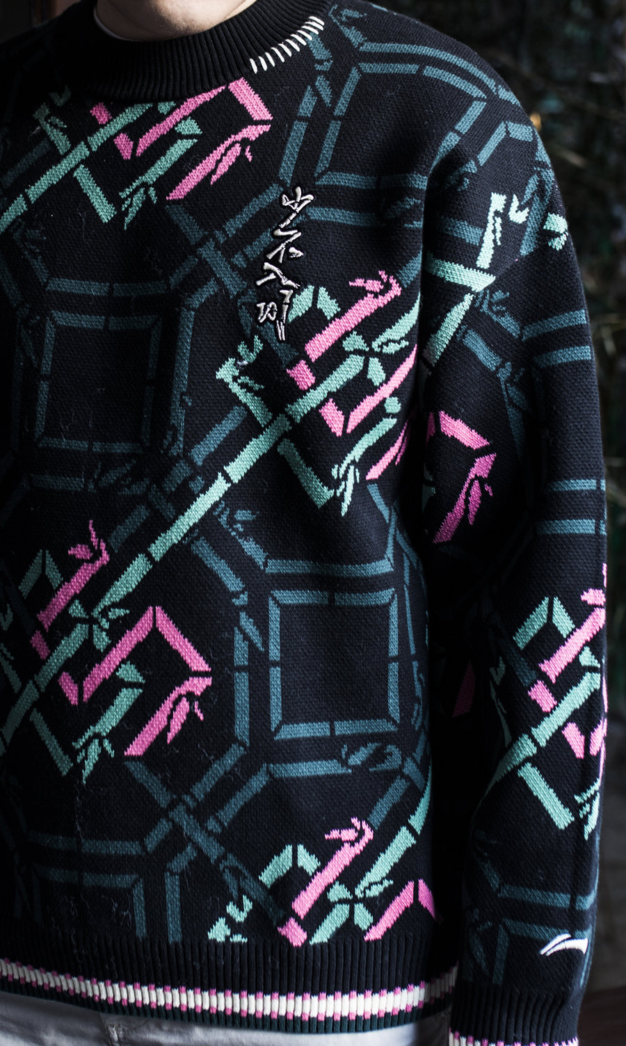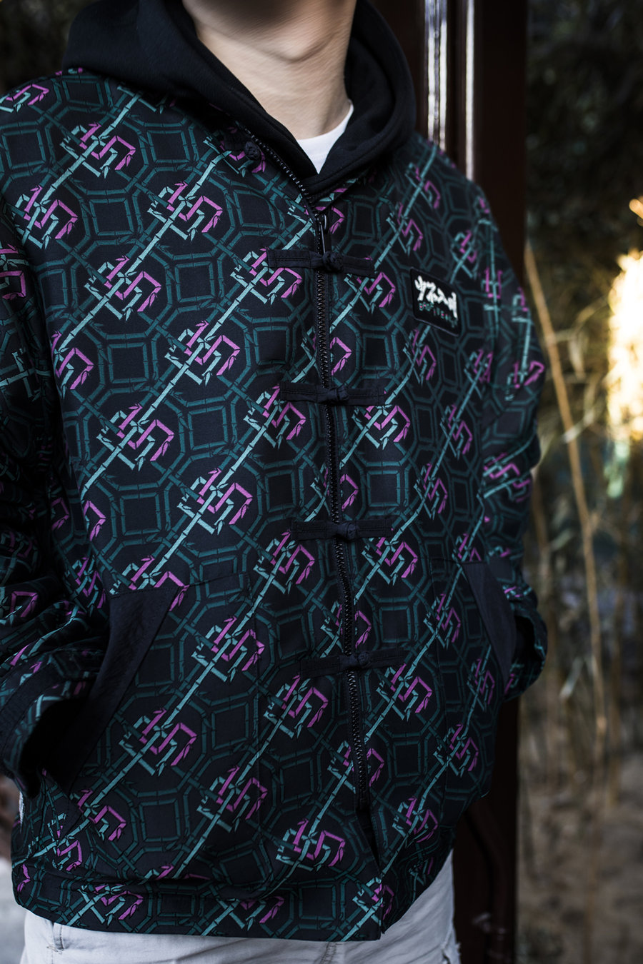 当年火出圈的盘扣夹克必不可少。图案融合竹节及 BADFIVE Logo,以蜀锦提花呈现,质感高级。