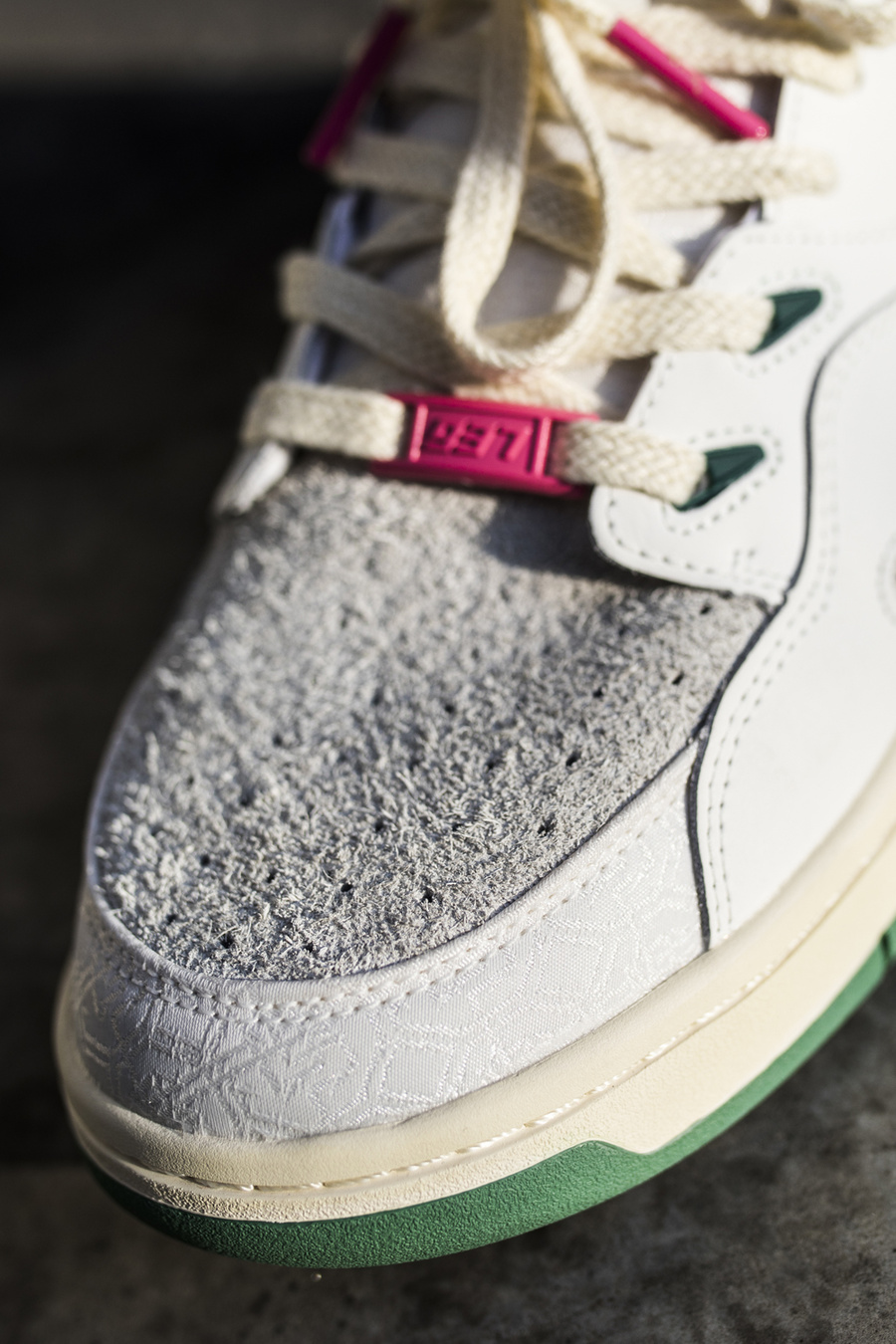 鞋面采用大量真皮材质,白色光滑皮料搭配灰色翻毛皮,带来肉眼可见的高质感。