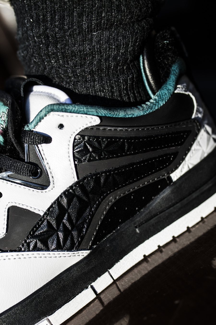 鞋面钻石切割皮革,灵感来自成都地标 IFS 楼上的熊猫雕塑。