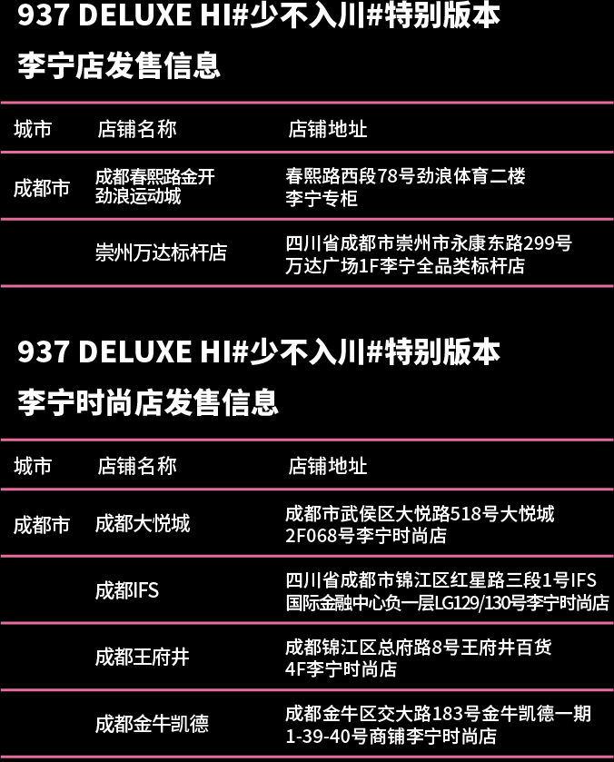2018 年李宁携手中国街头潮牌 1807 打造「少不入川」城市限定系列。