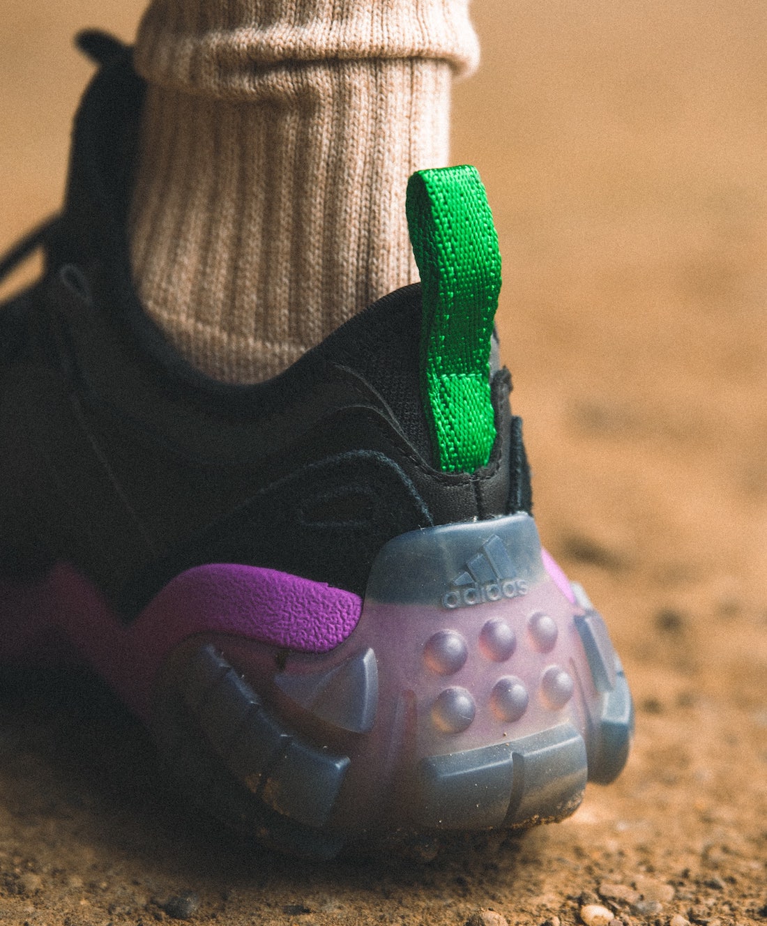 中底运用了紫色,后跟提拉处选用绿色作为点缀,颇为亮眼。