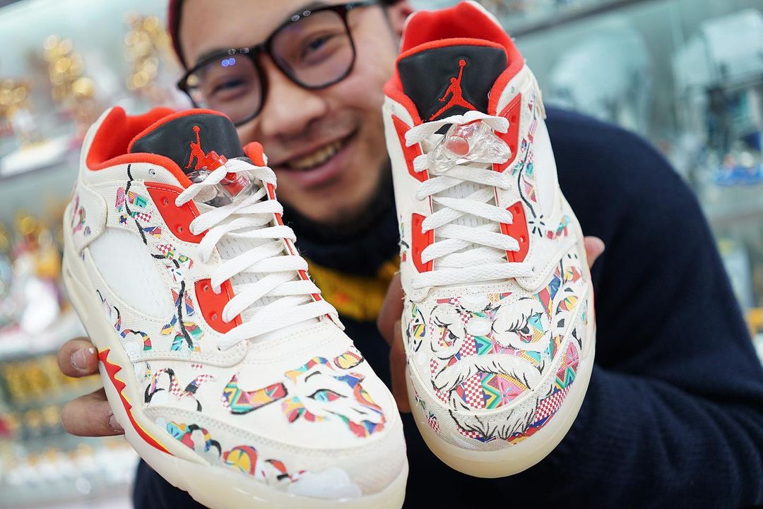 只不过这次不是全新的球鞋,而是在 CNY 配色的 Air Jordan 5 Low 和 Air Jordan 35 上进行二次创作。