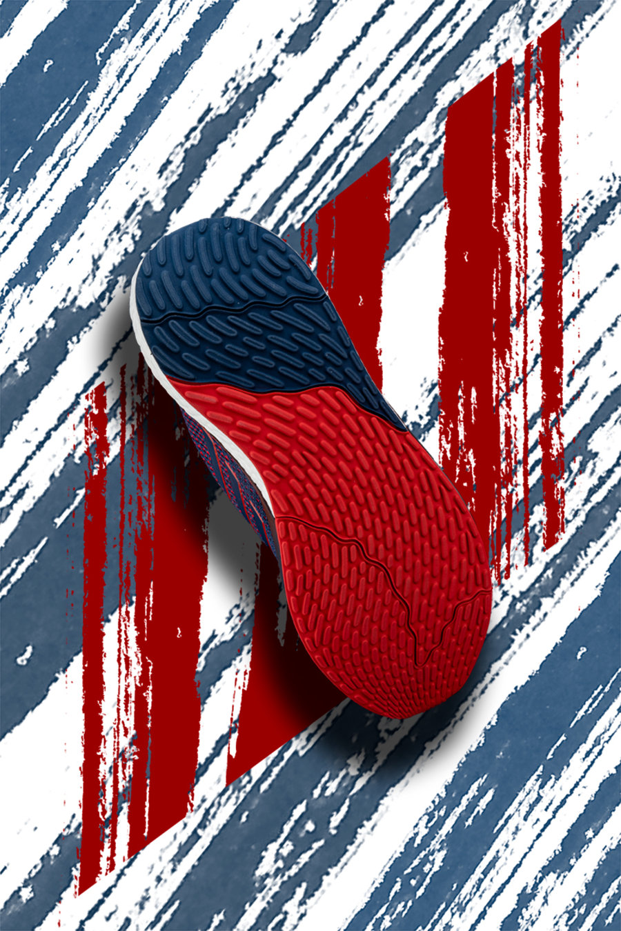 低调内敛的海军蓝色、红色渐变配进一步从视觉上提升鞋身流线感。