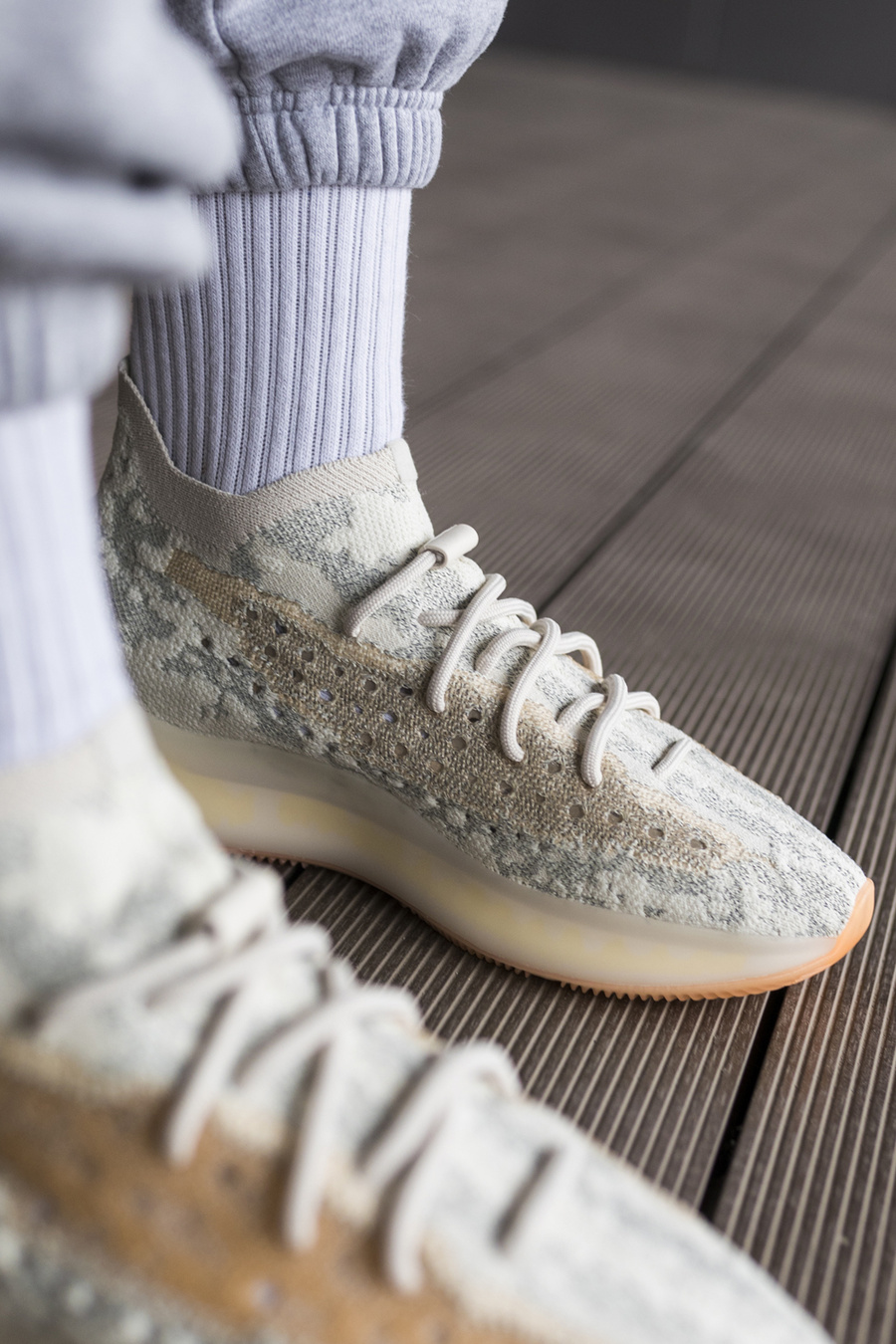 风格介于首发 Alien 的清爽风格和 Yeezy 传统的大地色之间,搭配方式更加自由。