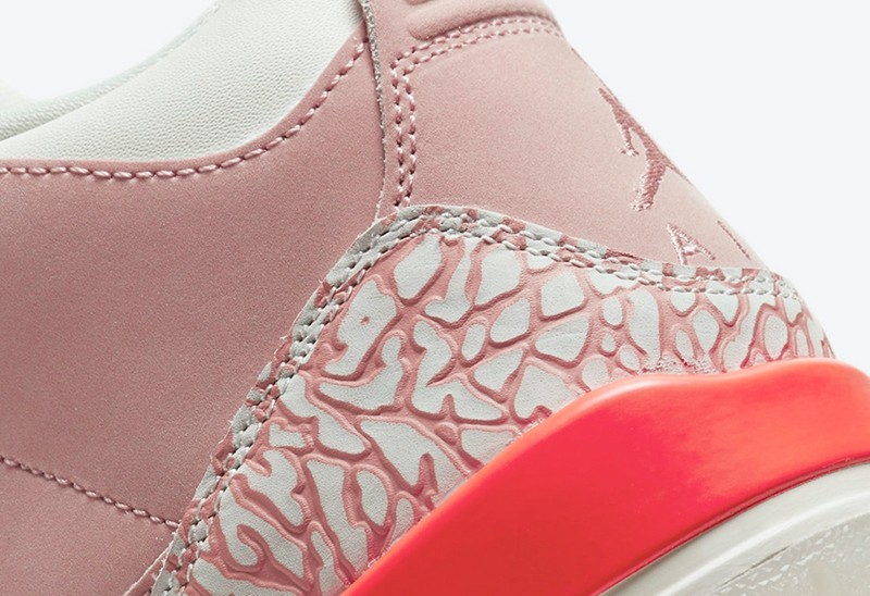 鞋带孔以及鞋舌 Jumpman Logo 则是以珊瑚粉色妆点,为鞋面带来层次感的提升。
