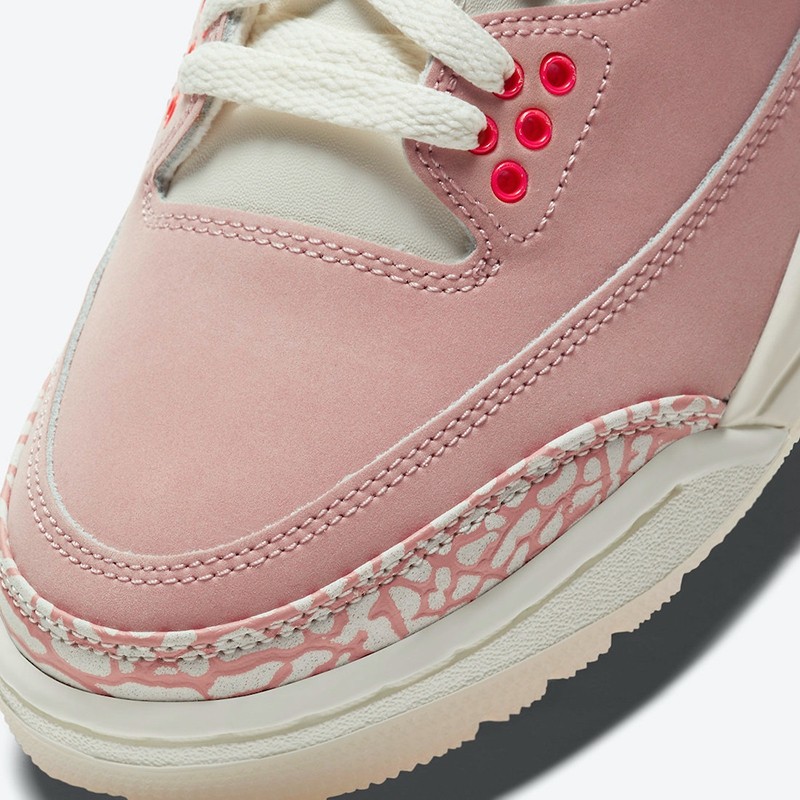 第二双为配色名为 Rust Pink 的 Air Jordan 3,整体粉色的造型,搭配乳白色鞋舌,毫无疑问猛男看到又要心动。