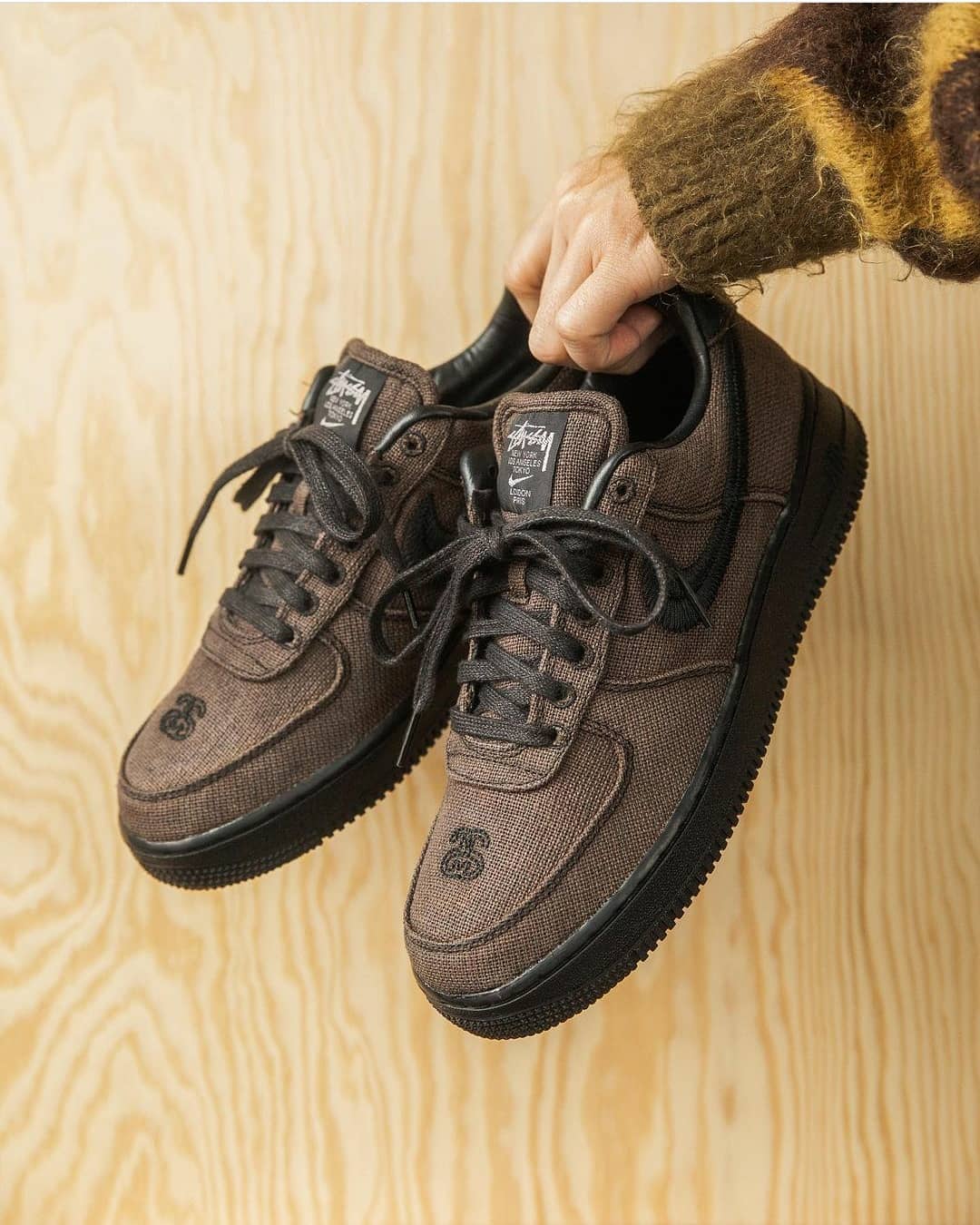 Stussy x Air Force 1 因为黑色过于低调,所以价格只有卡其色的一半,其实两双鞋的细节和质感都完全相同,更耐脏更实惠的黑色肯定是小编首选。