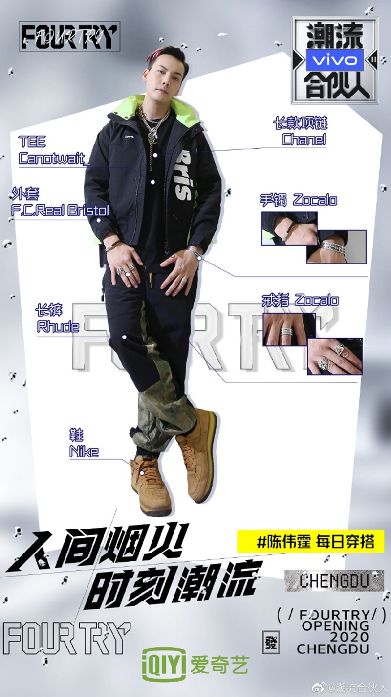 身为本季主理人的陈伟霆小编选择压轴介绍,毕竟身为节目中的「知心大哥」时时刻刻照顾在店铺生意上和弟弟妹妹,但同时作为潮流主理人的他,每天的 OOTD 也是十分考究。