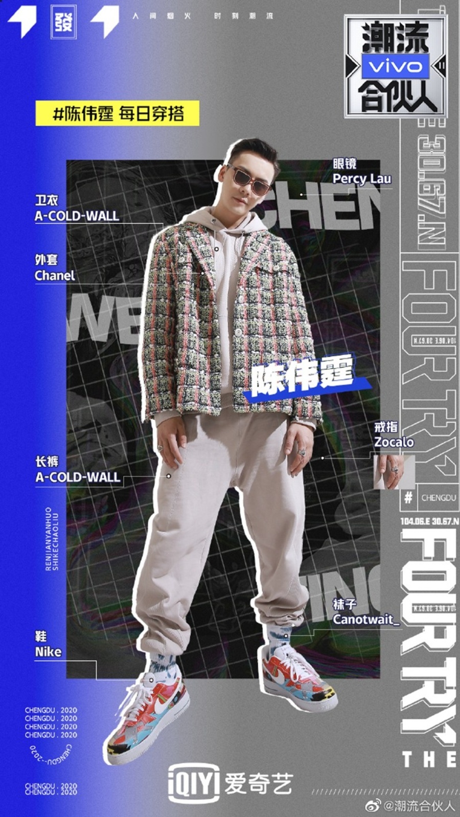 从节目中可以看出陈伟霆,十分喜欢 Air Force 1 鞋型,不仅仅只是百搭的摩卡小麦 Air Force 1,还有花哨的 RuoHan Wang x Air Force 1 都能搭配出十分吸睛的造型。