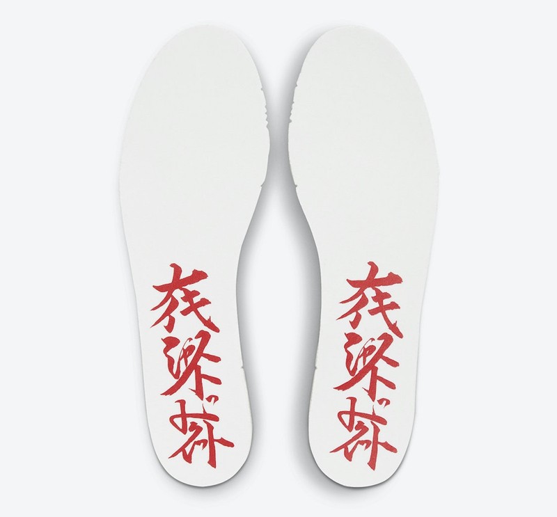 后跟处采用两块写有日文的麂皮材质代替了传统的 Nike Logo,彰显配色身份。