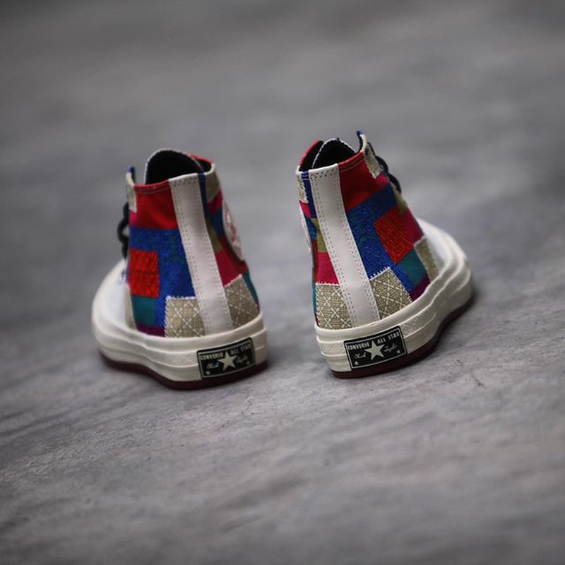 前段时间,Converse 曝光了 CNY 主题鞋款,欧阳娜娜也上脚了「新百家衣」配色的 Chuck 70。