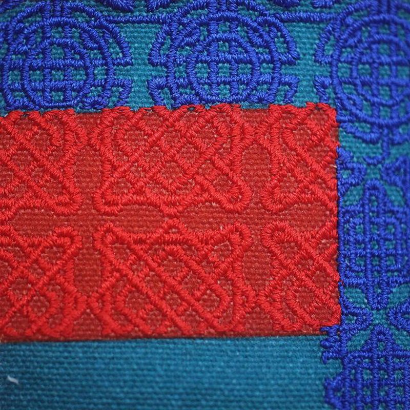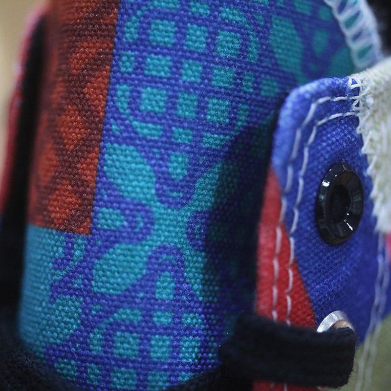 鞋身后半部分采用了多种颜色拼接的设计,体现了百家衣的主题