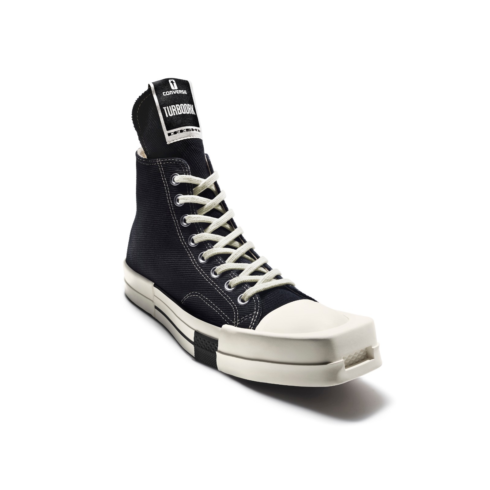 Rick Owens 在经典的 Chuck 70 基础上加入了全新的设计元素,使鞋身进行弯曲和重构,延长了鞋舌并将鞋头磨平。