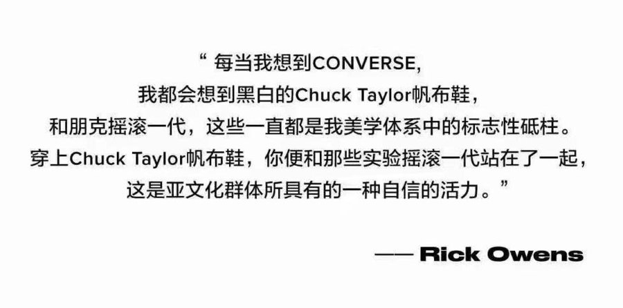 Converse 和 Rick Owens 之间可以说很早之前就有了千丝万缕的联系,Rick Owens 曾从 Converse 旗下经典球鞋中汲取灵感,推出过众所周知的「大匡威」系列。