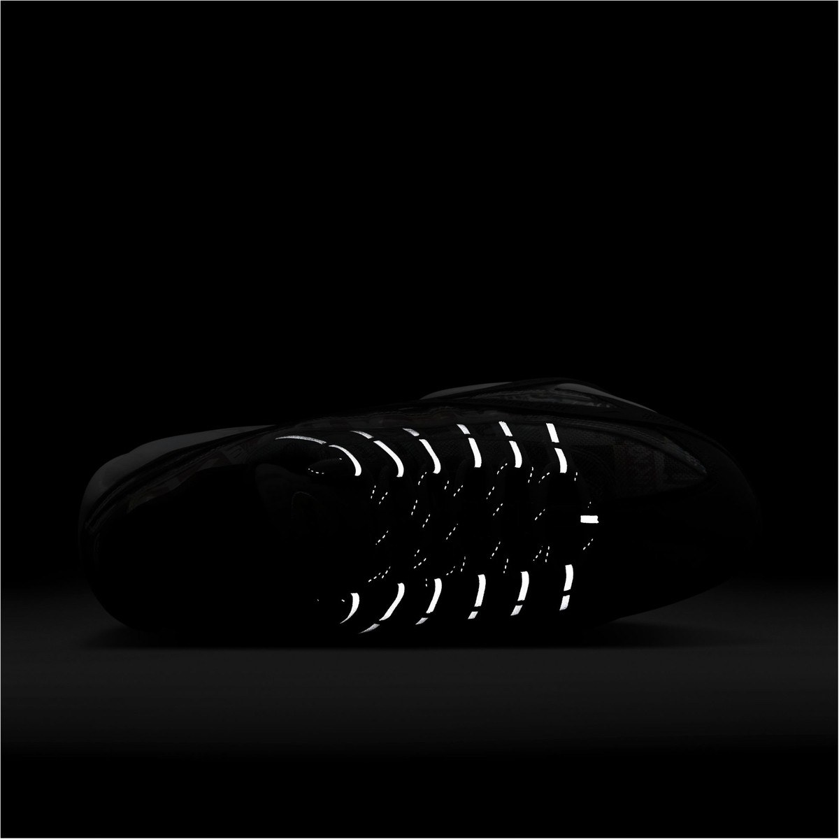 鞋带及鞋带孔处均加入了 3M 反光设计,夜光灯下颇为亮眼。