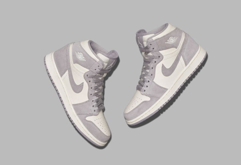 同样是浅色调的 Air Jordan 1,整双鞋采用灰紫色麂皮材质搭配米白色牛巴革打造而成。整体配色方案简洁清新,也难怪作为 WMNS 规格发售,十分适合女生上脚。