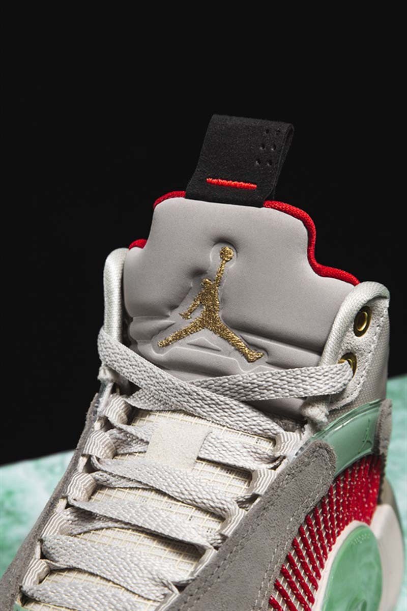 另一双 Air Jordan 35 还将象征着好运的玉石元素巧妙地融入到整体设计中。