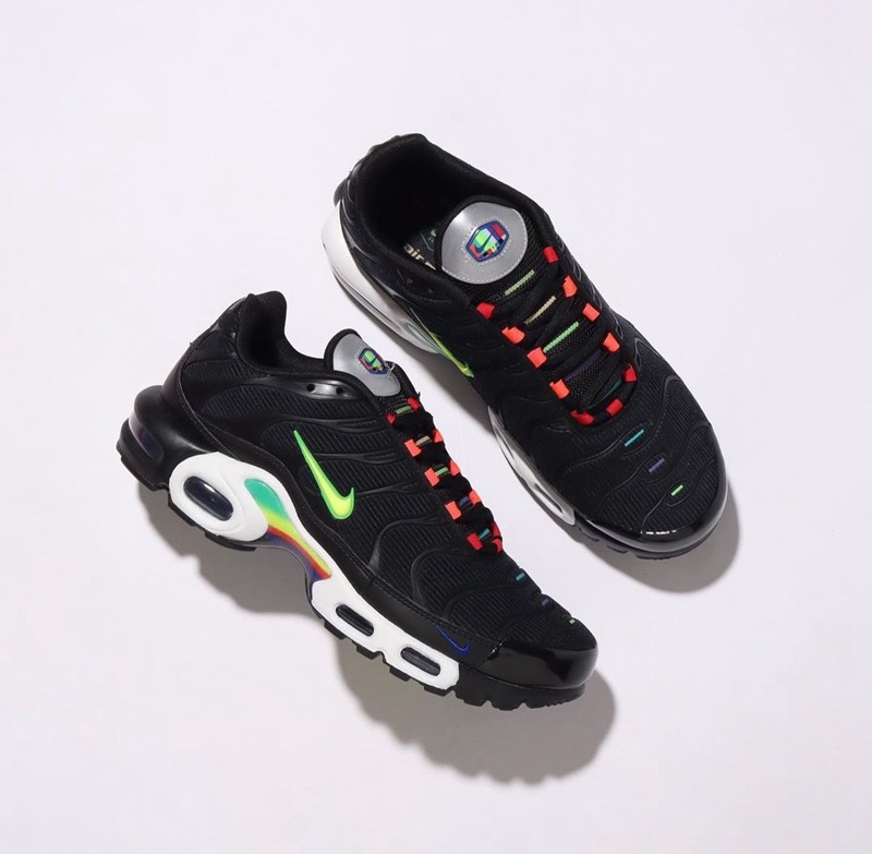 最后一双则以相对冷门的 Air Max PLUS 打造,黑色的鞋身搭配上侧身处荧光绿色的 Swoosh Logo,视觉效果十分吸睛。