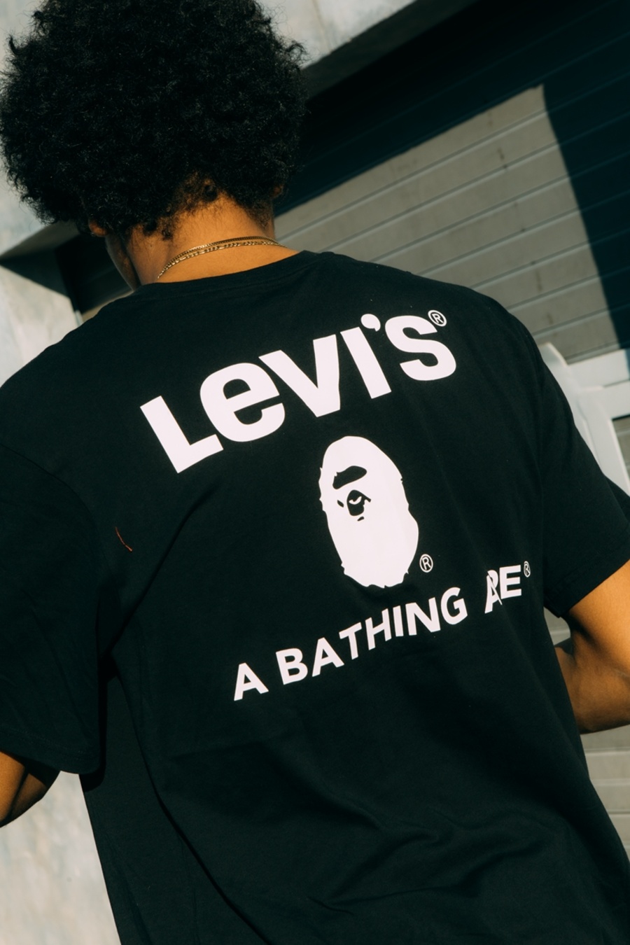 除了牛仔外套,全新的联名短袖也是十分吸睛,背面印有 BAPE 和 Levi’s Logo,彰显联名身份。