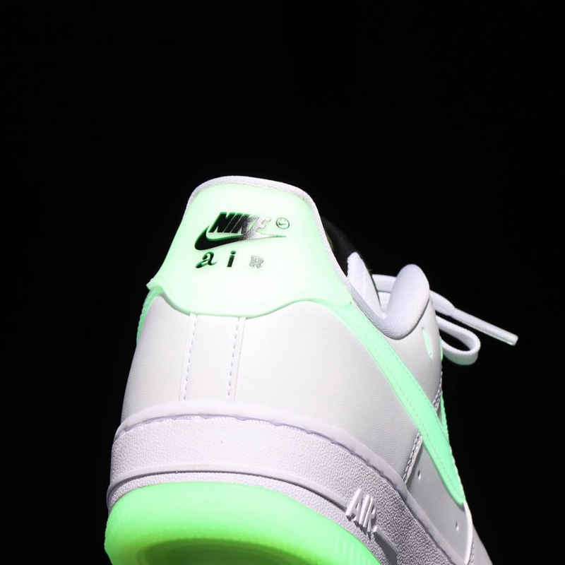 而这双全新的 Air Force 1 最大的亮点莫过于,外底、Swoosh Logo 和后跟 Nike Logo 均带有夜光效果。