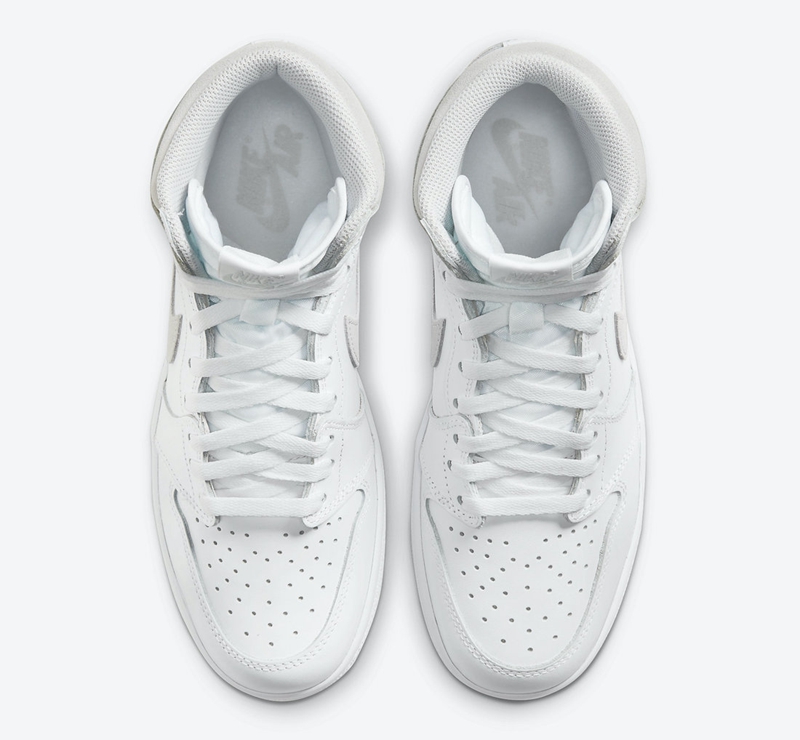 此次复刻的最大的亮点当属刻意在突出的年代感,光滑白色皮革打造鞋面搭配上灰色麂皮材质,与此前复刻的 Air Jordan 1 质感略有不同。