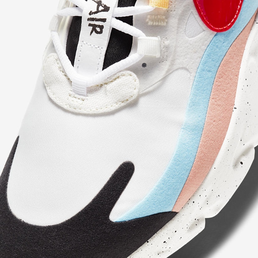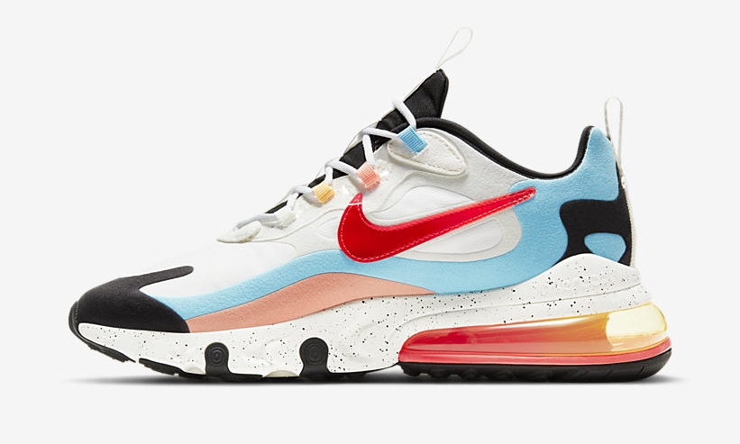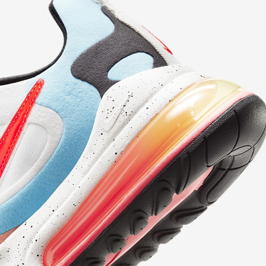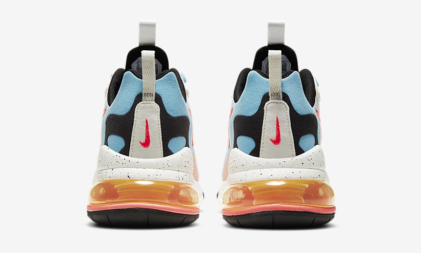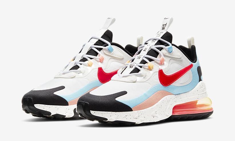 第二双 Air Max 270 React 鞋面选用白色,配以浅蓝色和浅橙色作为点缀,层次分明。