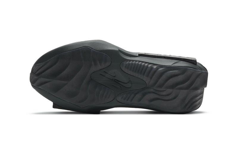 鞋身通体选用大面积黑色覆盖,设计极具未来感,造型流畅,鞋面以网眼面料搭配合成纤维彰显层次。
