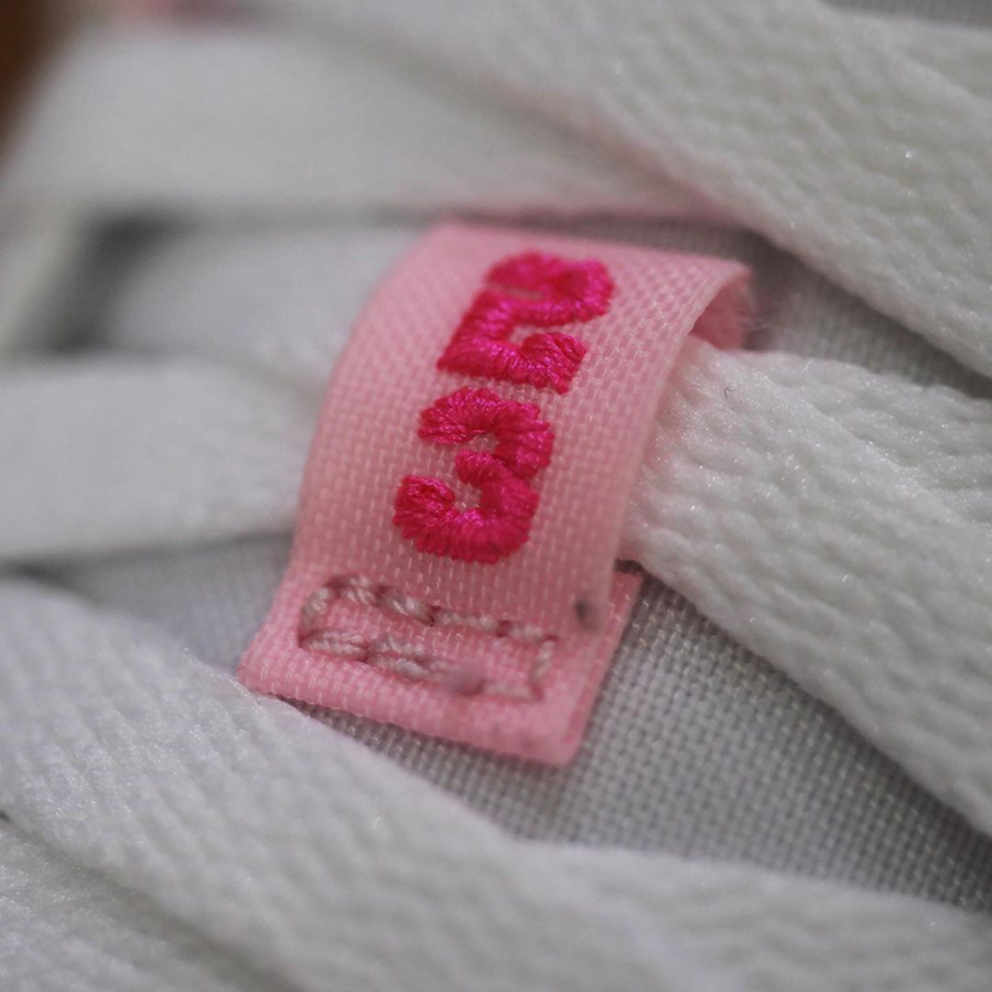 鞋身以水洗效果的粉色皮革为框架,填充白色皮革搭配,配色清新,很适合作为春天的穿搭选择。