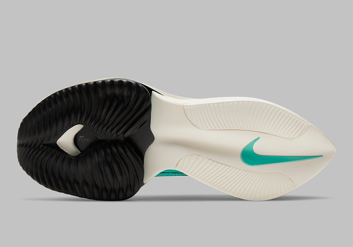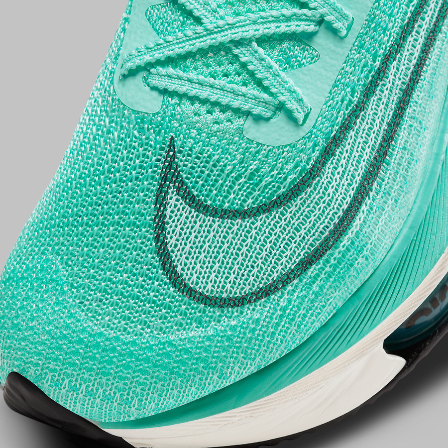 近日,Nike Air Zoom Alphafly NEXT% 再度迎来全新配色,本次采用醒目的湖绿色为主调,搭配硕大的浅绿色 Swoosh 并以黑色勾勒出轮廓。