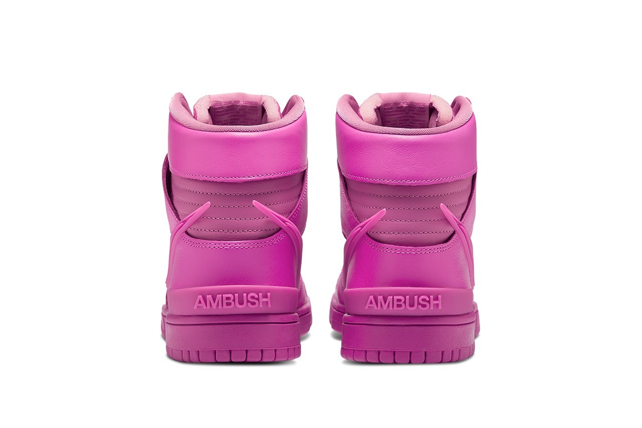 更为重磅的消息则是,目前骚粉配色的 AMBUSH x Nike Dunk Hi 全尺码市价高达¥8000 RMB 左右!
