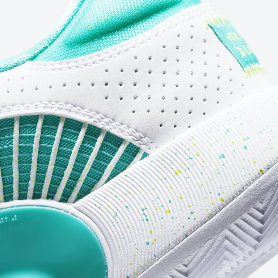 既然作为大侄子的 PE 配色,鞋舌处印也有着郭艾伦个人 Logo 和经典的 Jumpman Logo,熟悉的 “心之所向,身之所往” 字样也再度出现在后跟部分,彰显专属身份。