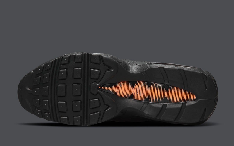 中底部分的 Air Max 气垫同样妆点暴力橙色,视觉效果格外醒目,同时提供足够的软弹脚感。