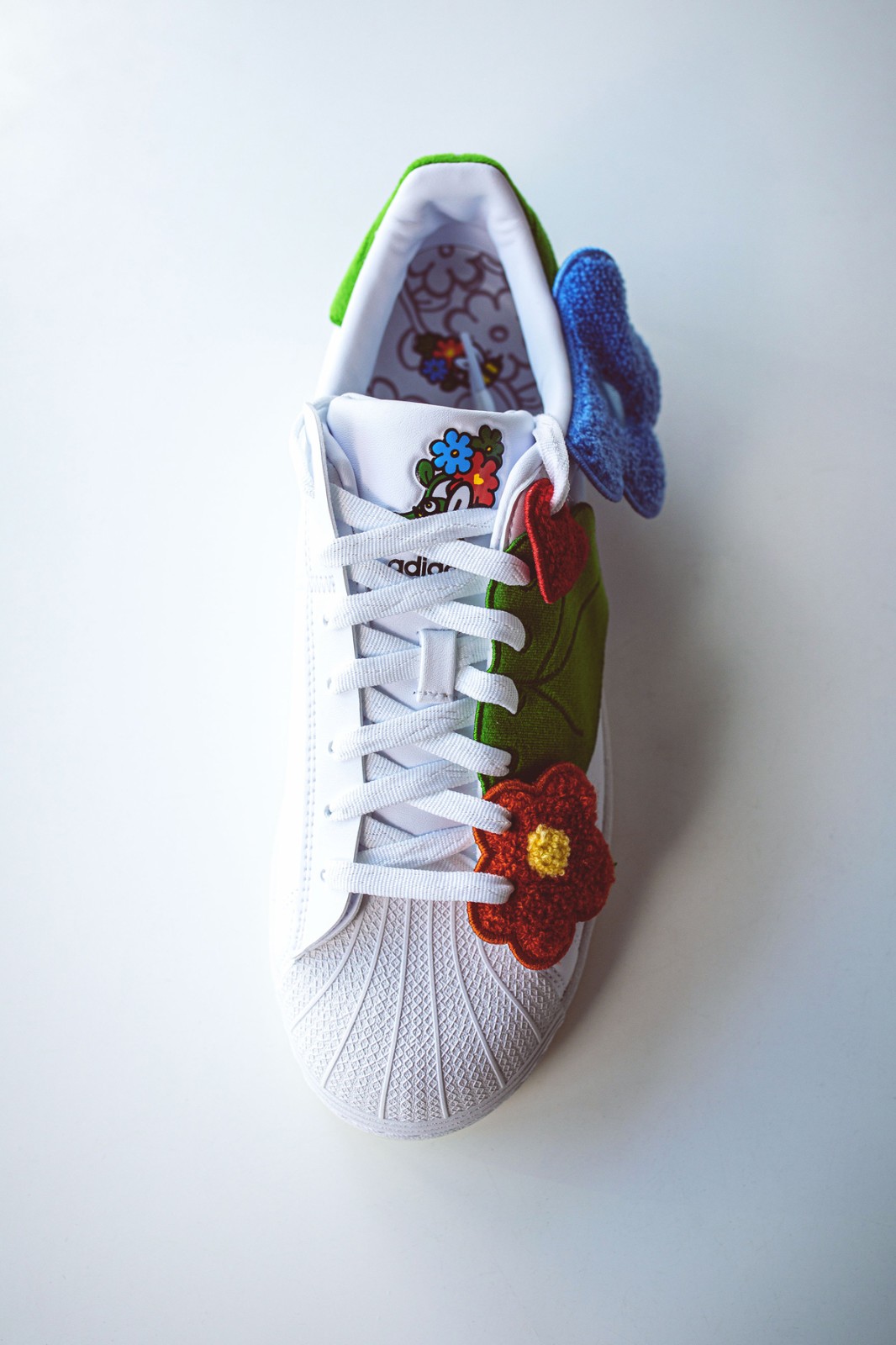 包含贝壳头 Superstar 和 Nizza Hi 两款鞋型,以小蜜蜂、花卉、树叶等元素点缀,以立体配件方式呈现。