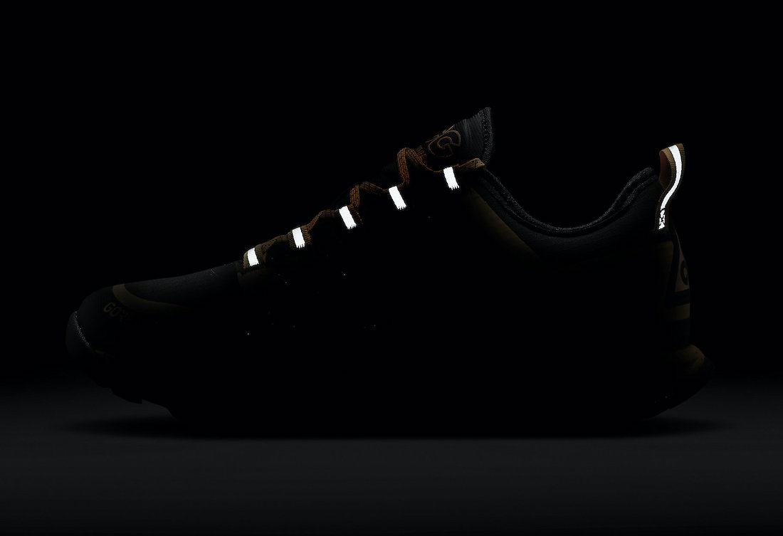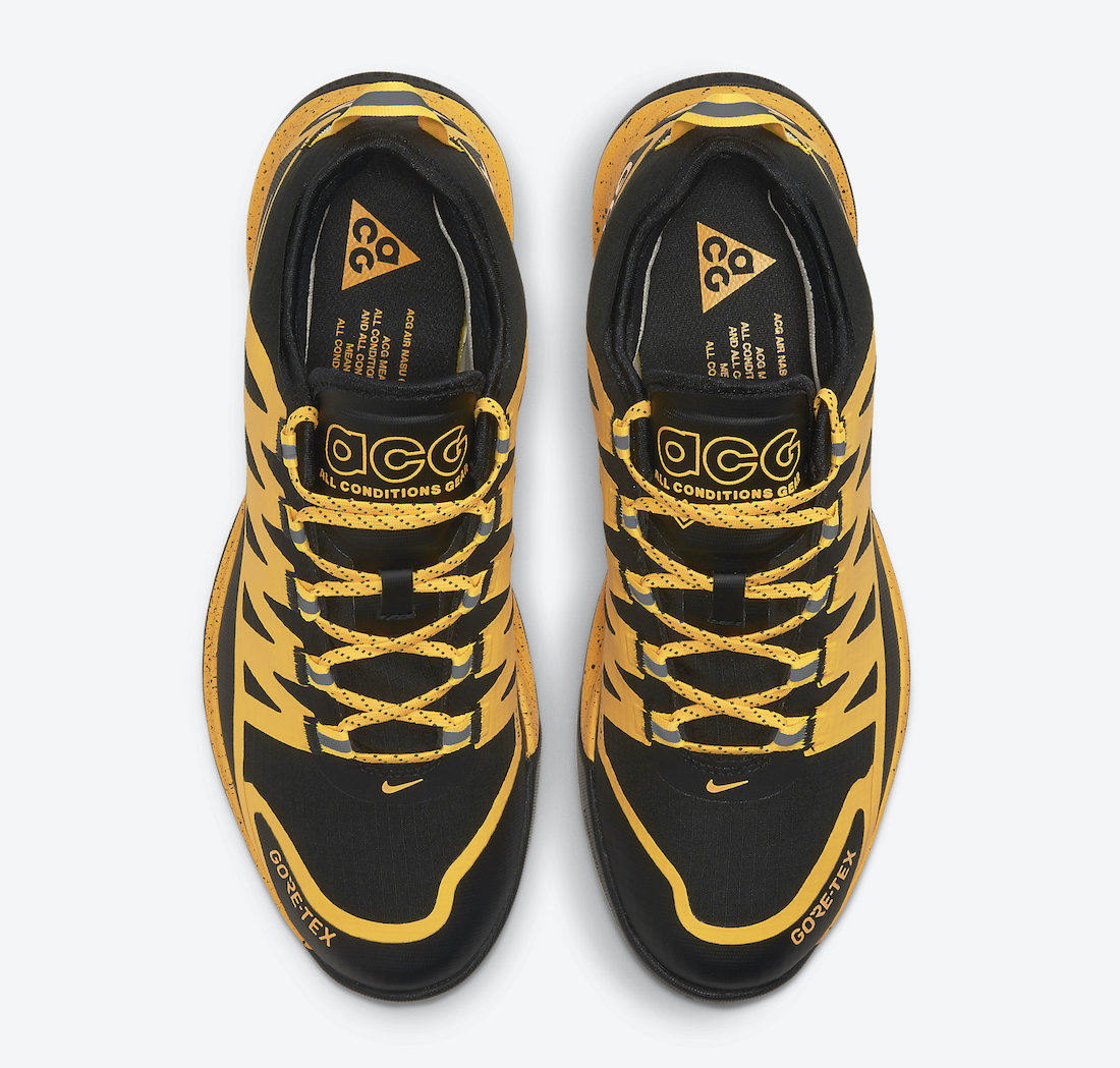 鞋面采用黑色为主黄色点缀的 GORE-TEX 材质打造,防水性得到极大地提高,颜值也有不俗表现。