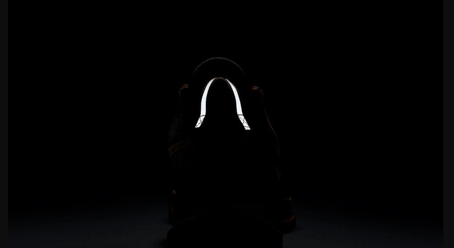 细节方面,鞋带孔和鞋跟提绳都加入 3M 反光材质,即便是在黑夜中也是非常吸睛。