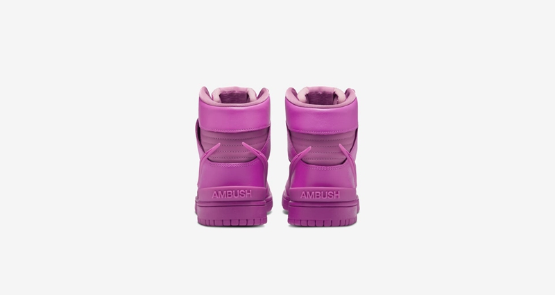 终于在今天 SNKRS 上出现了骚粉配色的 AMBUSH x Nike Dunk High 的身影。