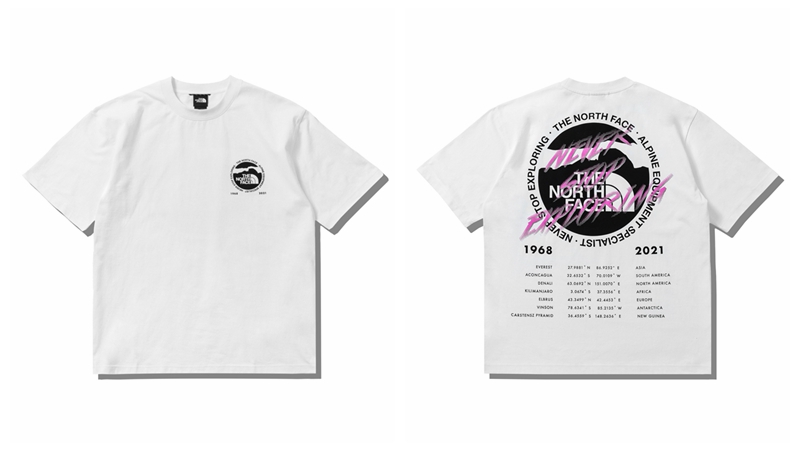 最大亮点在于保持经典剪裁的同时,通过醒目撞色与背后山峦线融合的 TNF Logo,营造复古气氛下的视觉冲击。