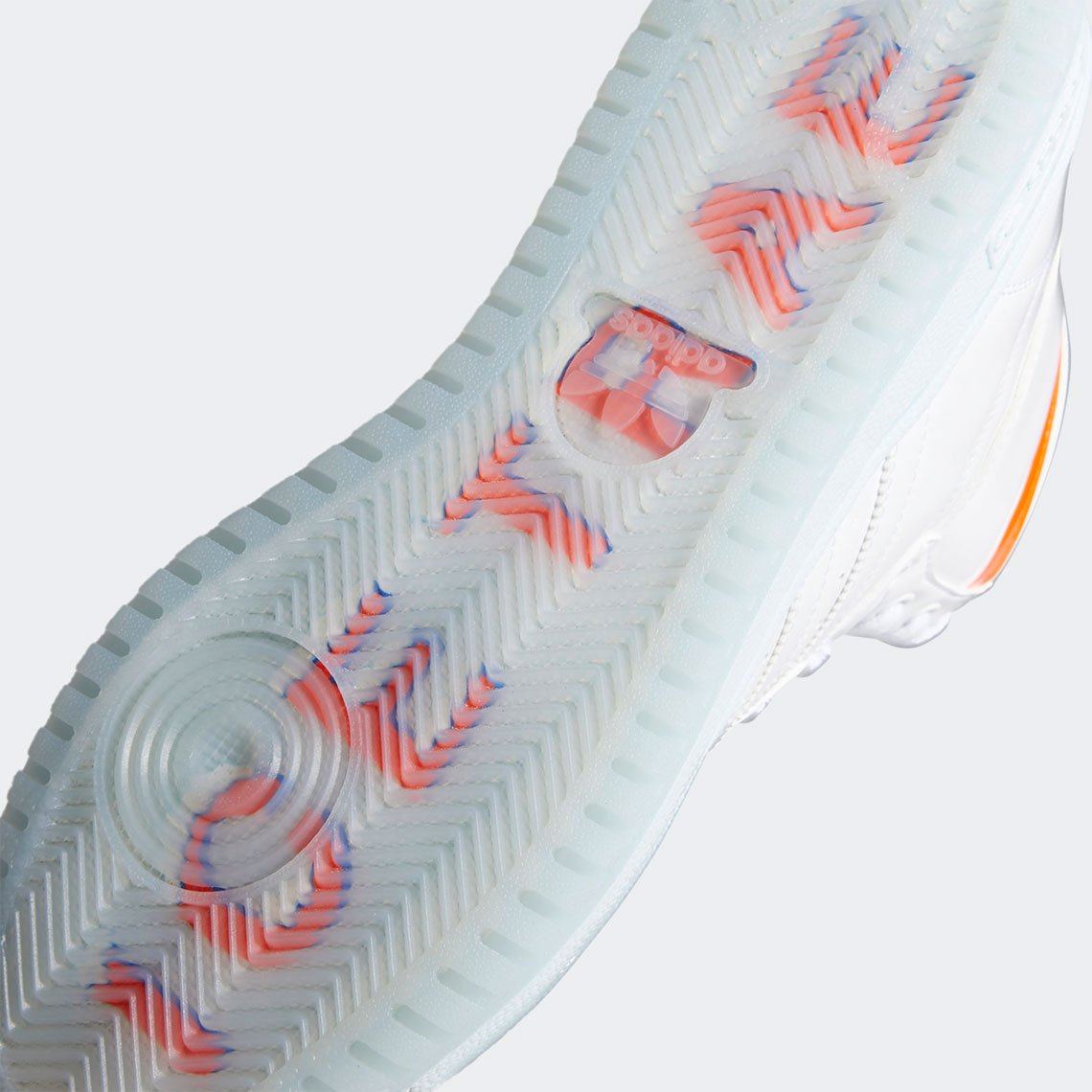 外底选用淡蓝色的半透明水晶底,透过外底可以看见印有特雷·杨的绰号 “ICE TRAE”。