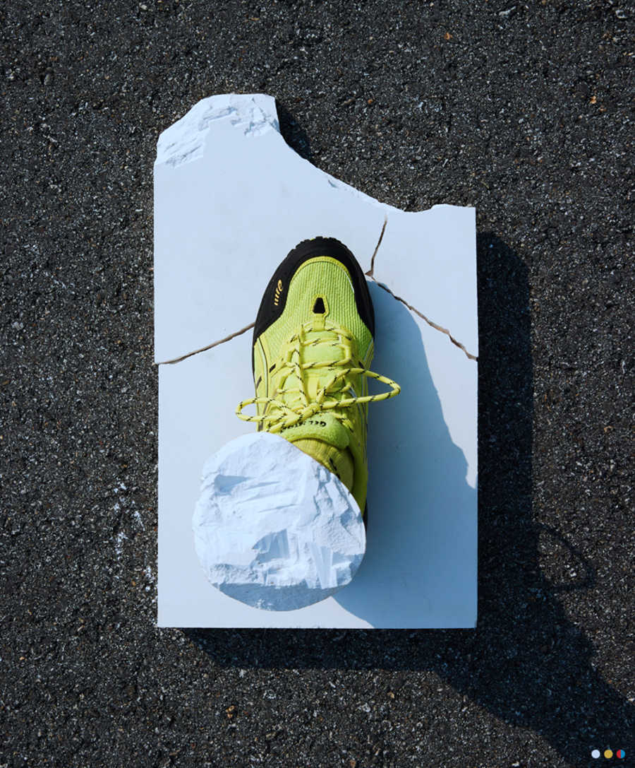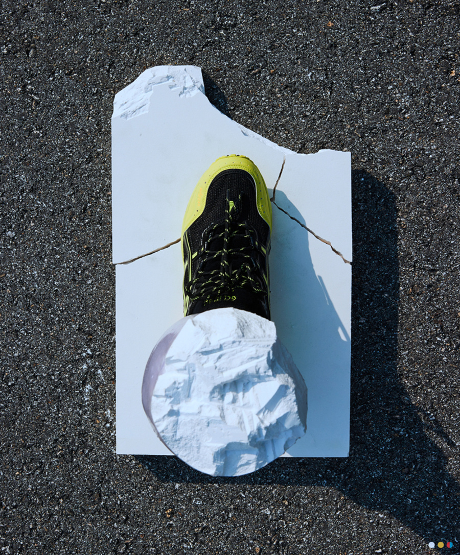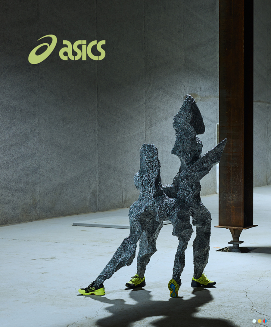 此次合作鞋款以 Asics 畅销鞋款 GEL-1090 为蓝本,并由双方联手打造的四足雕塑展示。