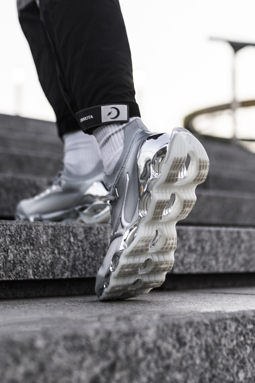 延续了空山基的审美情趣,以金属质感的银灰色为主体,中底结构还加入电镀效果。