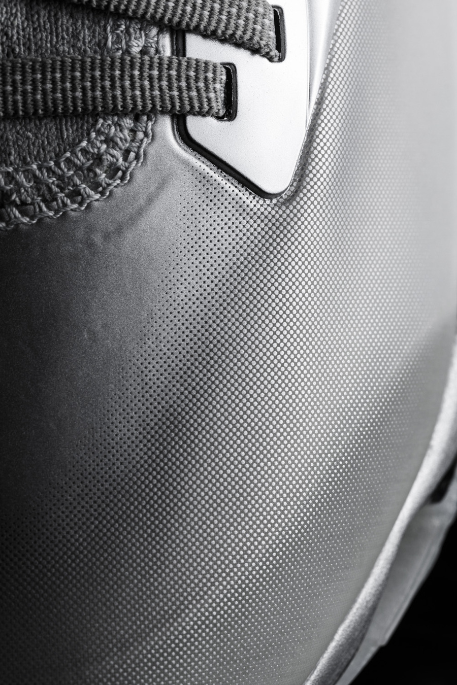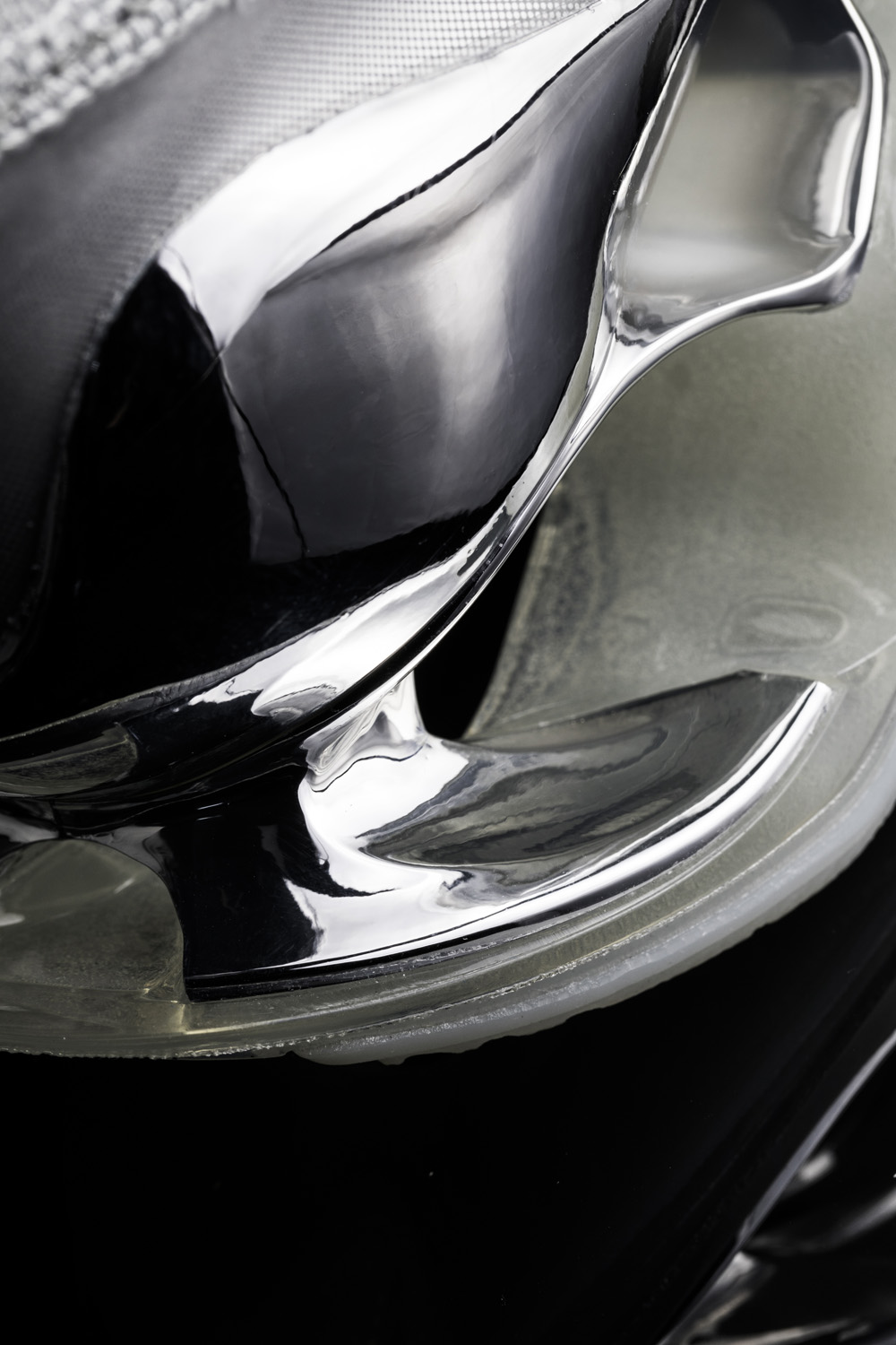 鞋面其实也极具看点,仿佛金属铸造的一体式造型,前卫感十足。