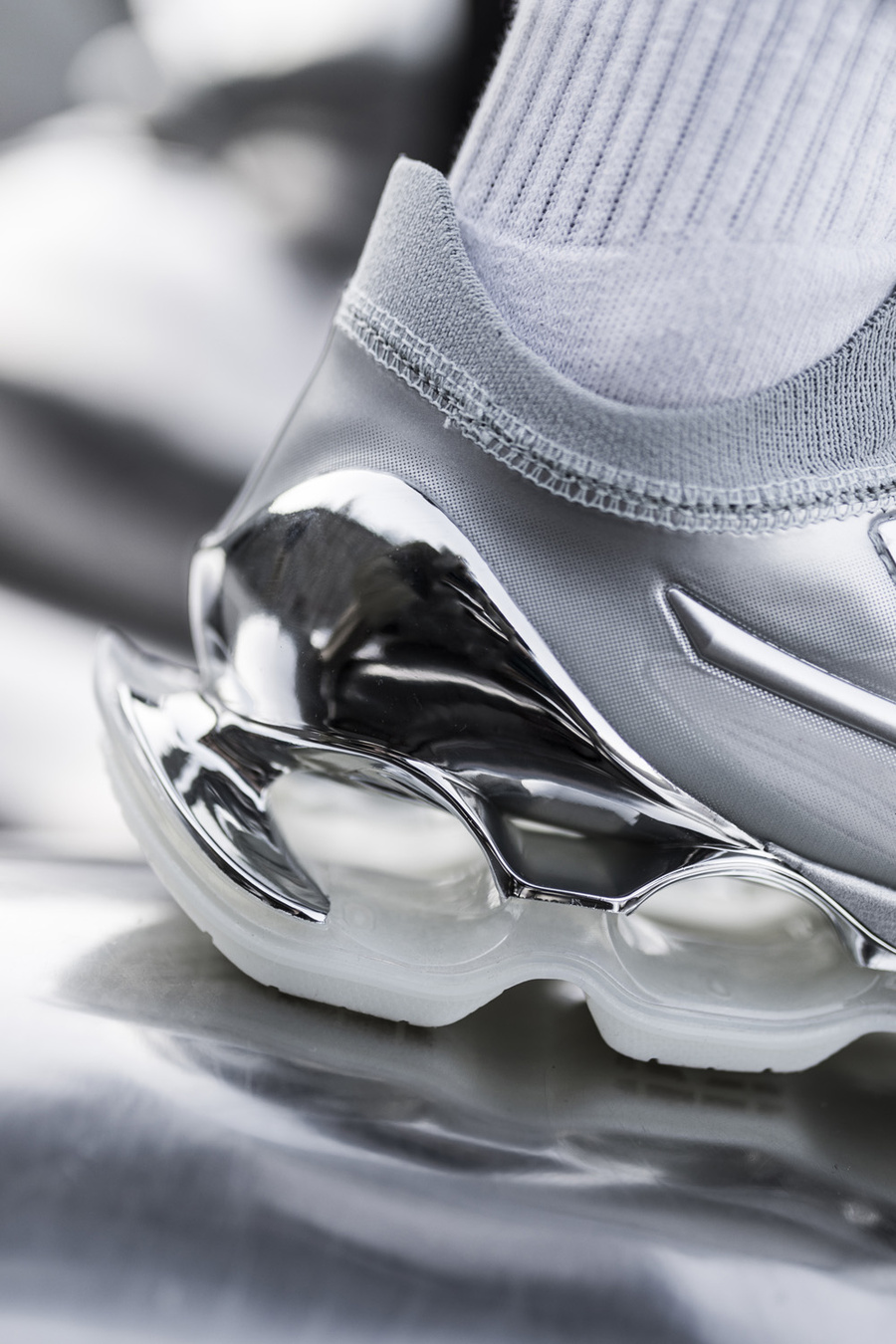 这次的空山基联名依然如此,祭出了旗下科幻旗舰 WAVE PROPHECY 预言系列第十代鞋型为蓝本打造。