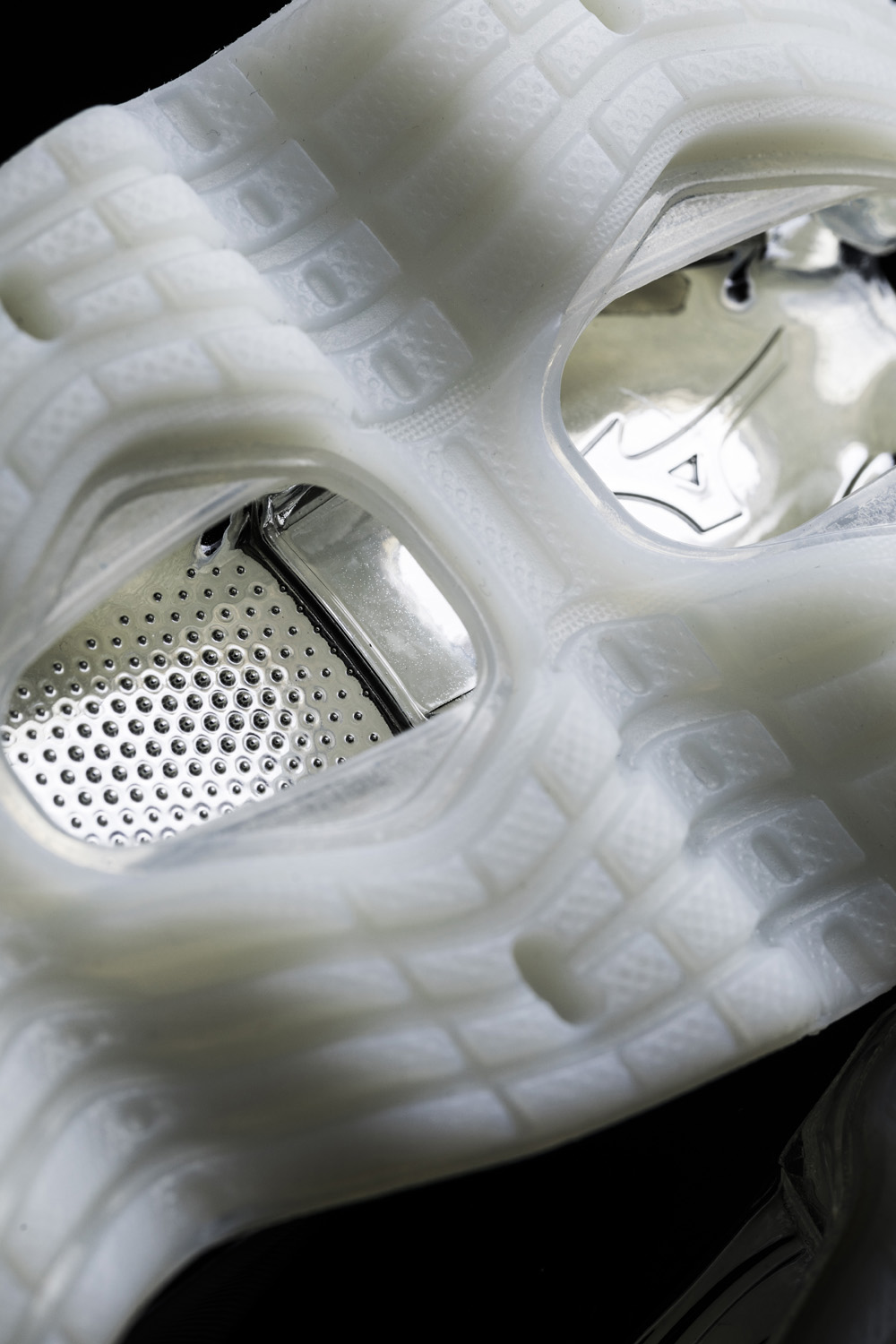 相信大家最关注的就是中底结构,造型科幻的 INFINITY WAVE,再加上电镀工艺,视觉效果极具冲击力。