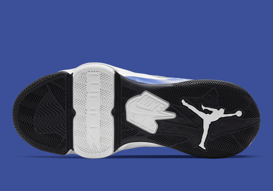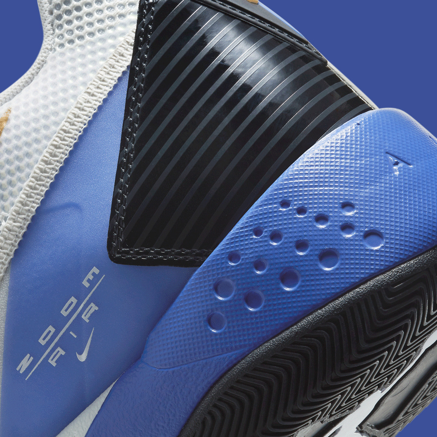 中底外露 Zoom 气垫保证脚感舒适度,后半部与鞋舌采用深蓝色填充,呼应 “Concord” 设计主题。
